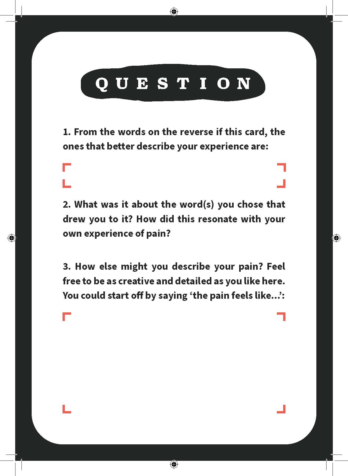 Usefulness – this focused on how useful participants found the toolkit in communicating their experience of endometriosis pain, and in understanding the experiences of other people. We prompted participants to consider why it was useful, how they might use it in future, how helpful it is in improving confidence discussing endometriosis pain to others.